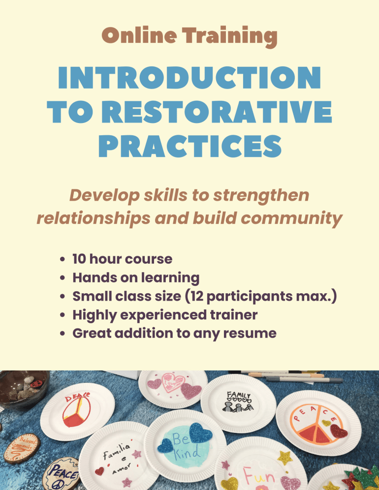 Want to develop your relationship and community building skills? Register for our online, open enrollment course: Introduction to Restorative Practices!